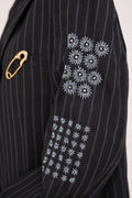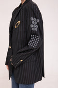 Cada uno de los VF Vintage Blazers fue bordado a mano con amor en nuestro taller e intervenido cuidadosamente con apliques vintage, seleccionados de forma única para cada pieza.